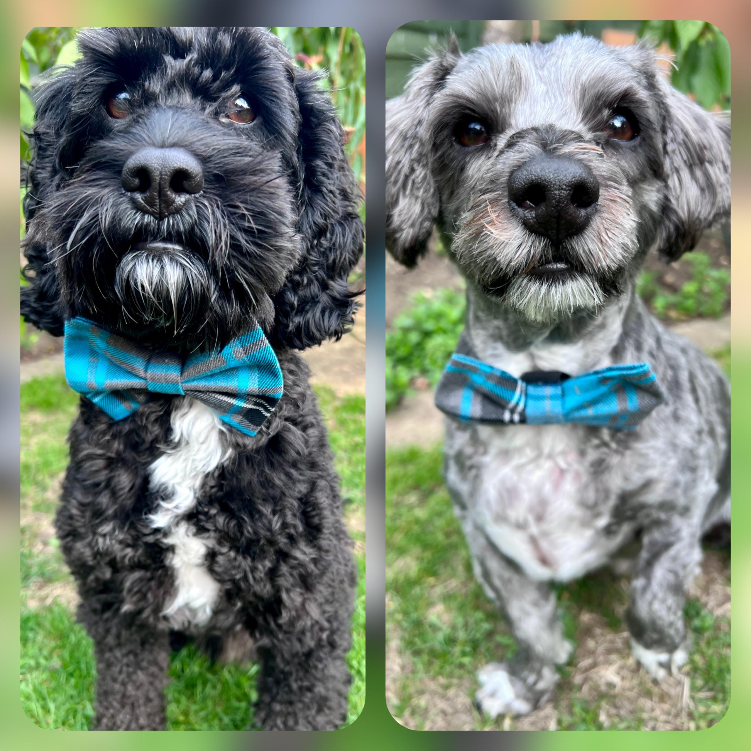 Albies signature Teal and Grey Tartan Fabric Dog Bow Ties