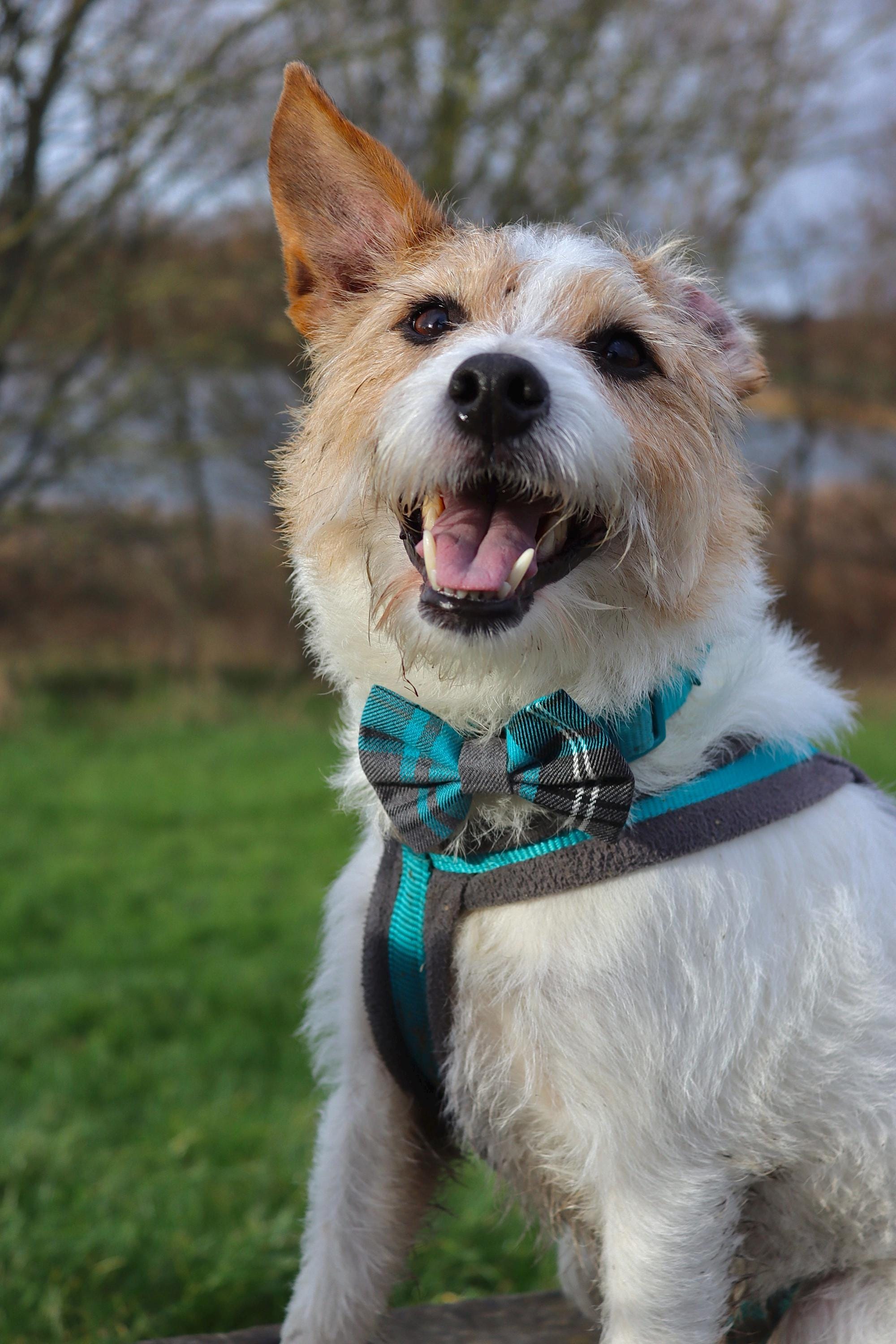 Each is handmade from striking Tartan fabric in a range of colours to suit any breed of dog. The Bow ties are attached using an elastic fastening at the back which slips onto the collar holding the Bow firmly in place. These can also be made with a popper fastening upon request.