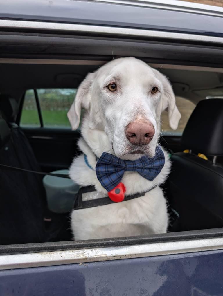 Delighted with another bow tie from Oh Mabel! Always very well made and good quality fabric. Comfortable for my dog to wear. Thank you!